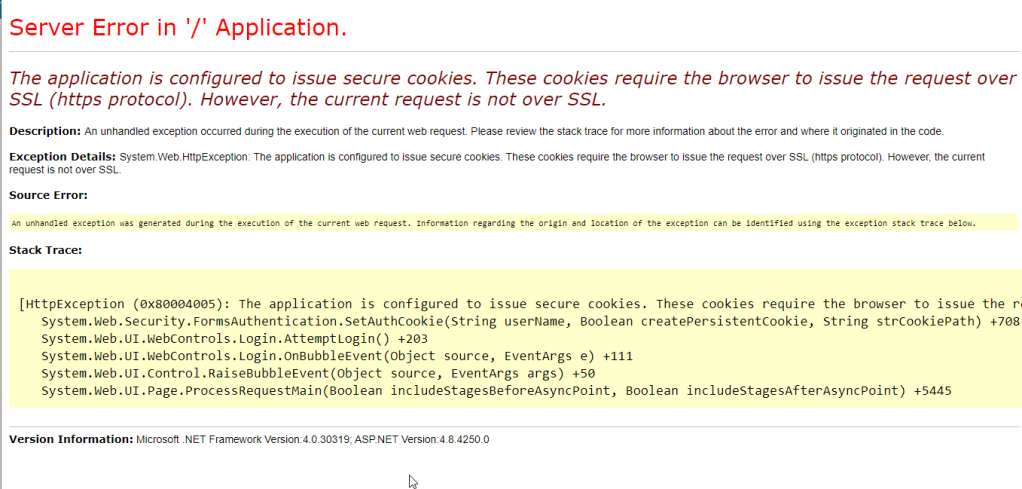 If this exception is happening in a local development environment, chances are you might be running your website over HTTP.